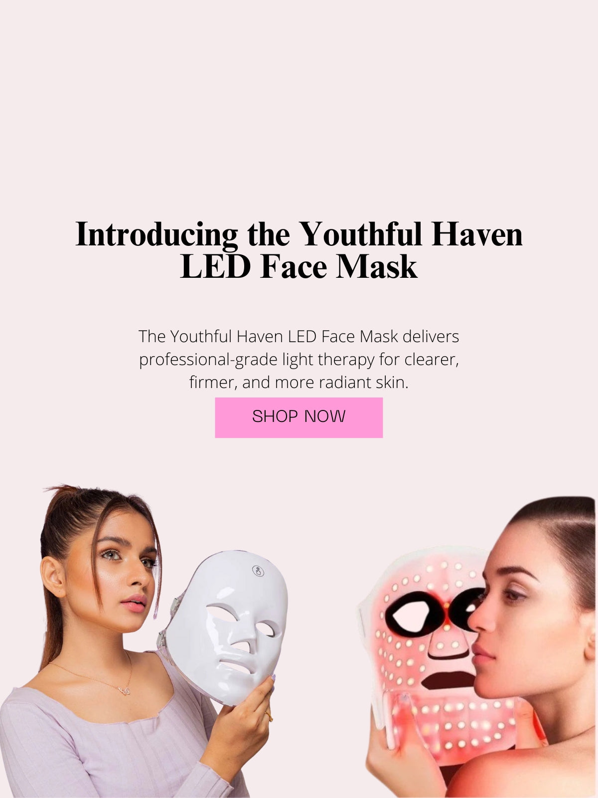 Harness the power of light therapy at home. Youthful Haven’s LED Face Mask is designed with multiple settings to target acne, fine lines, and dullness, giving you professional-level results in minutes.